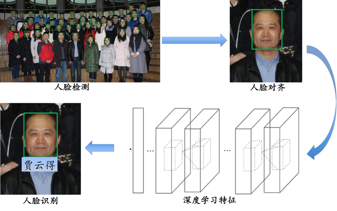 5.人脸表示与识别。研究人脸表示与识别的深度学习方法,包括人脸检测,人脸识别,人脸比对,活体检测以及人脸检索。提出了采用深度异构哈希网络的跨模态人脸检索方法,采用深度光照无关网络进行人脸识别的方法,以及基于生成对抗网络的人脸活体检测方法,研究成果发表在计算机视觉及人工智能顶级会议CVPR和AAAI以及国际权威期刊T-MM和PR上。