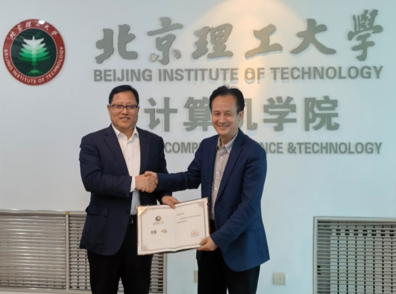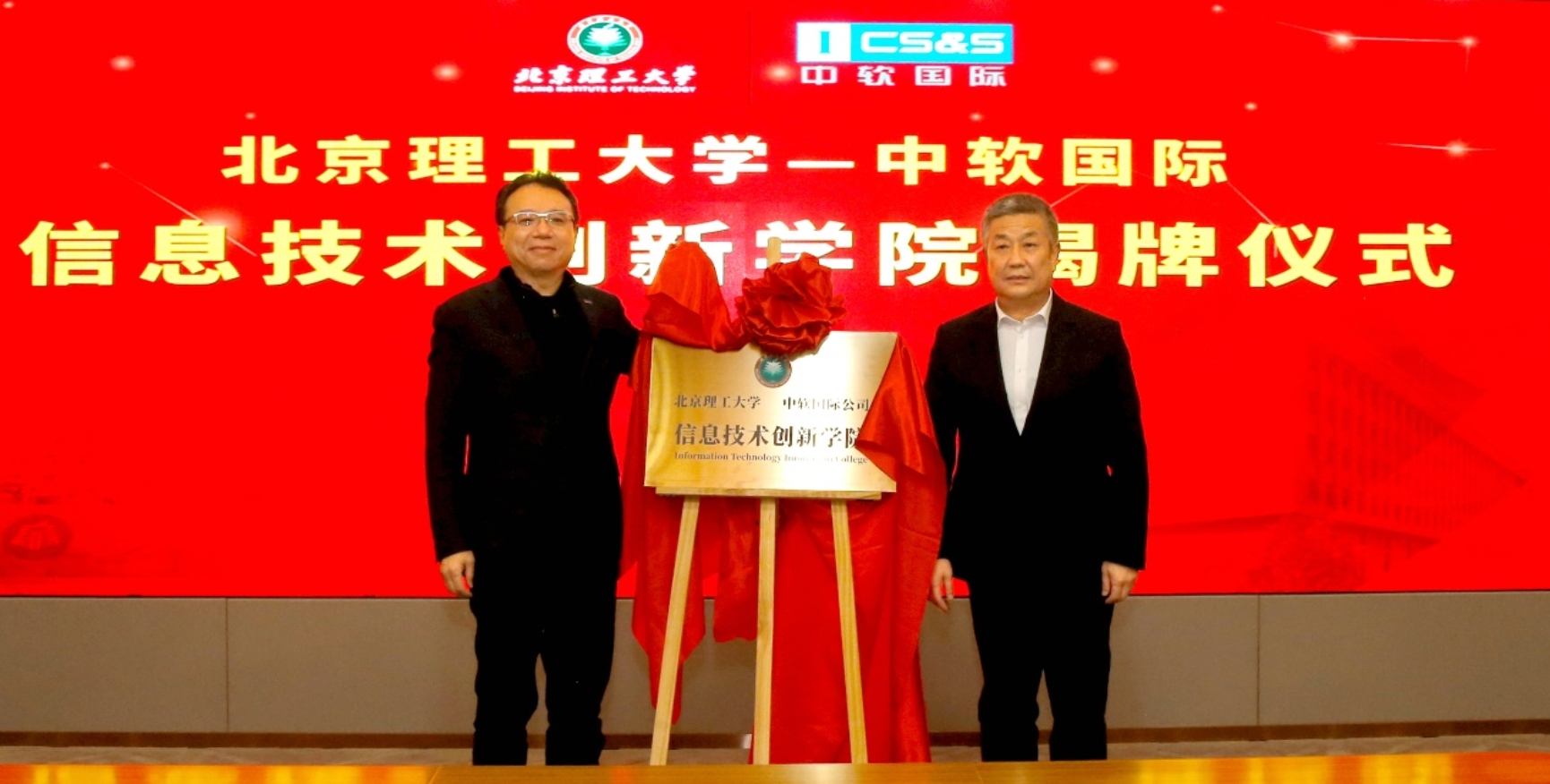 图1 时任北理工党委书记赵长禄与中软国际董事局主席陈宇红共同为信创学院揭牌