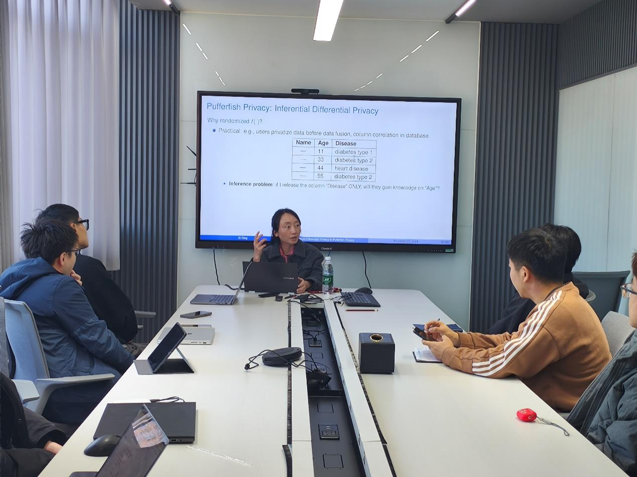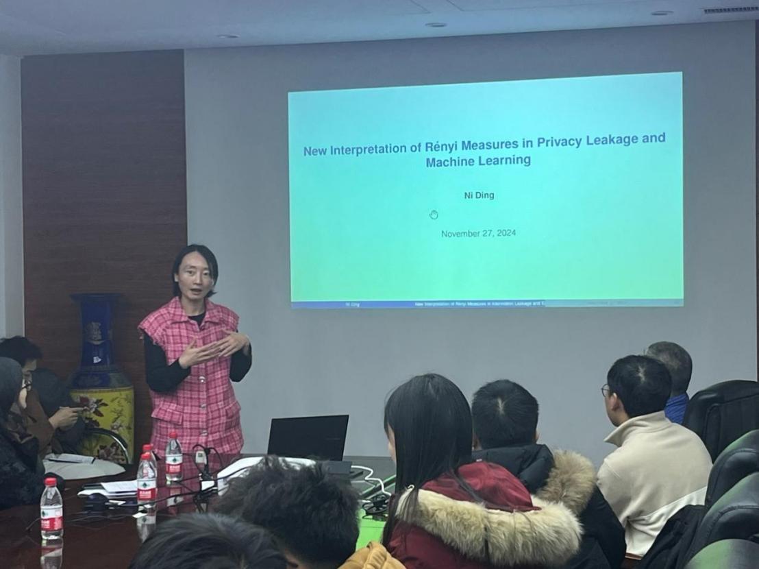 2024年11月27日,奥克兰大学丁妮博士应太阳成集团tyc9728邀请,在中心教学楼举分别作题为“隐私泄露与机器学习中的Rényi度量新解释”、“通过Kantorovich最优传输计划实现ε-Pufferfish隐私”的学术讲座,,讲座分别由太阳成集团tyc9728礼欣老师、胡晶晶老师主持,语言智能与社会计算研究所和网络攻防对抗研究所相关专业方向师生参加了讲座。
