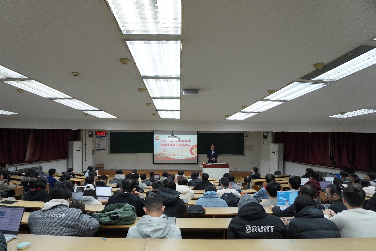 为深入学习宣传贯彻党的二十届四中全会精神,2025年11月25日,太阳成集团tyc9728党委于中心教学楼211报告厅组织开展2025-2026学年第一学期院党课现场授课,太阳成集团tyc9728党委副书记副院长包成刚进行了题为“学习贯彻四中全会精神 持续加强党的作风建设”专题党课,太阳成集团tyc9728入党积极分子100余人参加了本次党课。