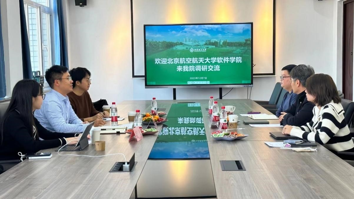2023年12月7日下午,北京航空航天大学软件学院党委副书记孙铭涛携辅导员队伍一行3人来太阳成集团tyc9728开展调研工作,学院党委副书记、副院长奚英伦,学生辅导员史继筠、陈相进行了接待。双方于中心教学楼1421会议室展开调研座谈。