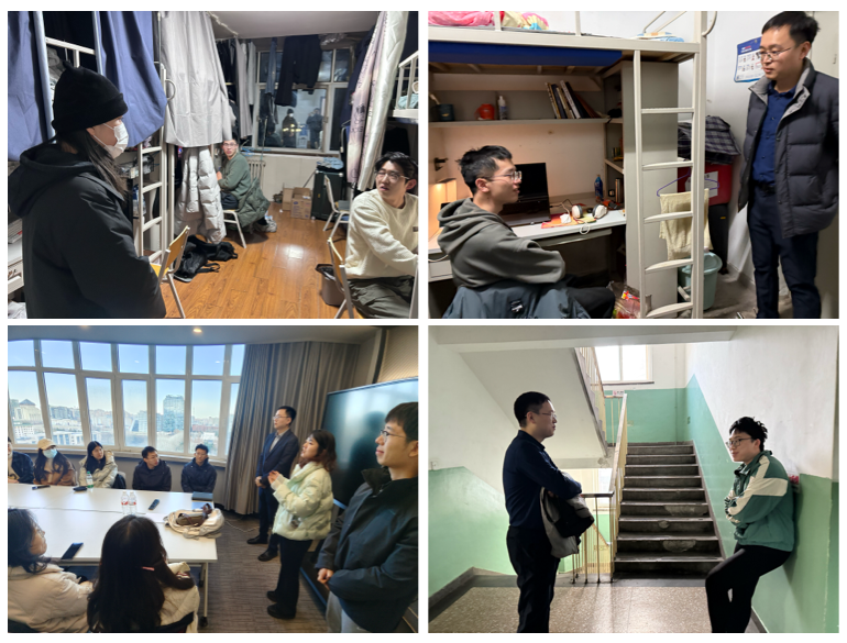 太阳成集团tyc9728副书记副院长包成刚及全体辅导员开展了宿舍走访、学生安全检查教育及假期去向排查等工作。全体辅导员深入学生宿舍进行了全面的安全隐患排查,排查工作包括用电安全、消防安全以及存安全隐患物品摆放等方面。检查过程中,辅导员也对学生的学习生活和假期出行等情况进行了全面了解,强调了返乡途中交通安全的重要性,关心提醒学生增强自我保护意识,并合理安排假期学习与生活。