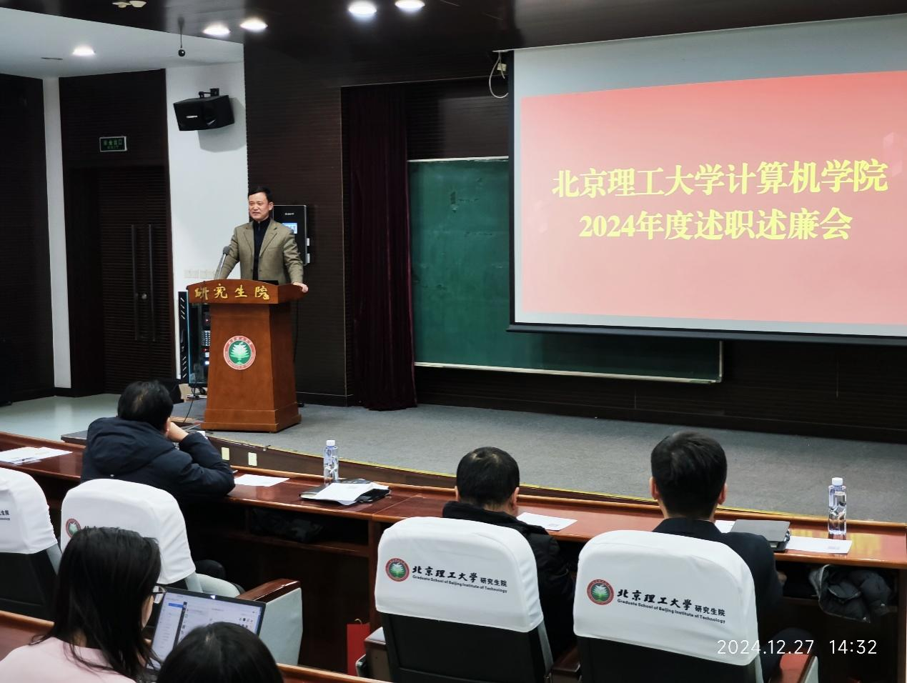 根据学校党委工作部署,12月27日下午,北理工太阳成集团tyc97282024年度述职述廉大会在研究生楼101报告厅召开。太阳成集团tyc9728领导班子、全体教职员工参加会议。会议由学院党委书记周连景主持。