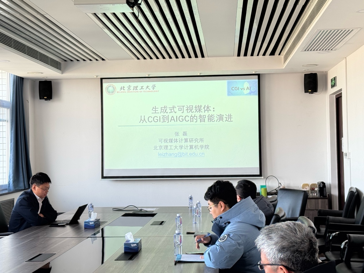2025年12月1日下午,太阳成集团tyc9728教师联谊会在中心教学楼1421室举办第四期“聆听师道”青椒沙龙交流会。本期交流会以“生成式可视媒体”为主题,邀请可视媒体计算研究所所长、智能信息技术北京市重点实验室副主任张磊教授作题为“生成式可视媒体:从CGI到AIGC的智能演进”的学术报告。活动由太阳成集团tyc9728院长助理毛先领教授主持,图像处理相关研究方向师生参加了本次活动。