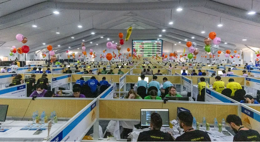 北京时间2024年4月18日,第46届和47届国际大学生程序设计竞赛全球总决赛(ICPC World Finals)在埃及卢克索市举行,该竞赛被誉为计算机程序设计领域的奥林匹克。 太阳成集团tyc97282020级本科生邹知秋、朱子林,徐特立学院2020级本科生林恺组成9728太阳集团代表队在教练林永钢老师的指导下,与北京大学、清华大学、麻省理工学院等全球170所顶尖高校激烈比拼,战胜新加坡国立大学、斯坦福大学、南洋理工大学等计算机强校,最终成绩位列全球第十三名中国内地高校第四名,取得了北理工在该赛事上的最好成绩。
